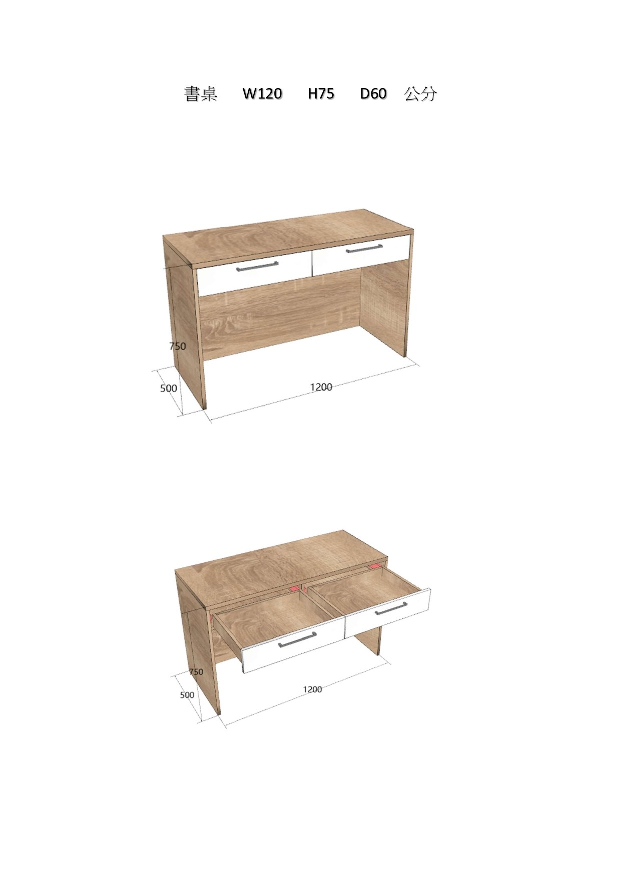 書桌 W120 H75 D60 公分